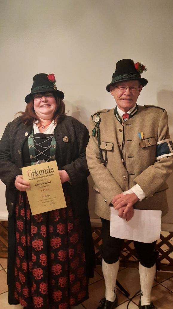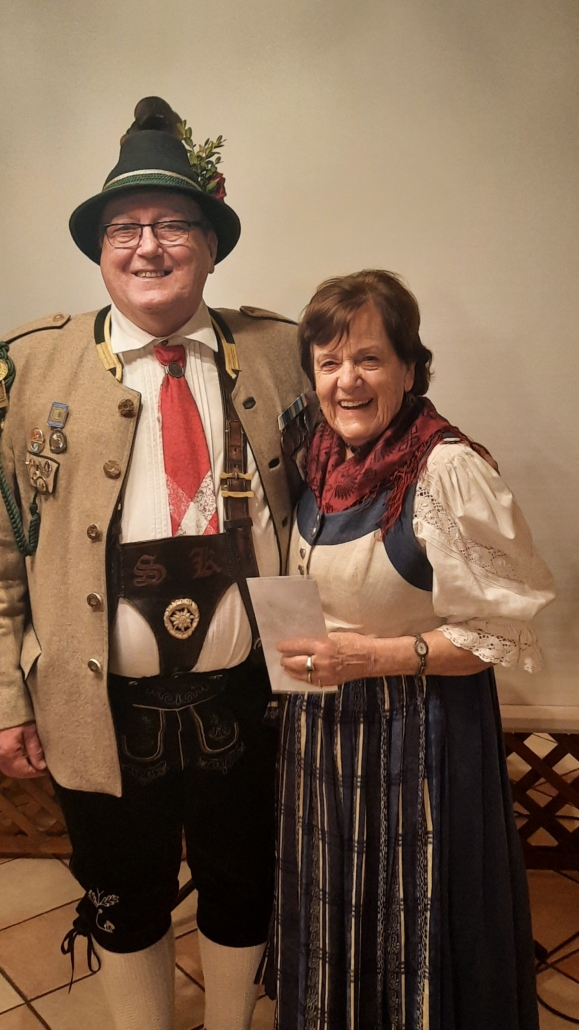 Ingrid Anner erhielt von Hauptmann Sepp Kirner für 60 Jahre Mitgliedschaft in der Kompanie einen Essensgutschein. (zur Ansicht der Bilder mit „Klicken“)