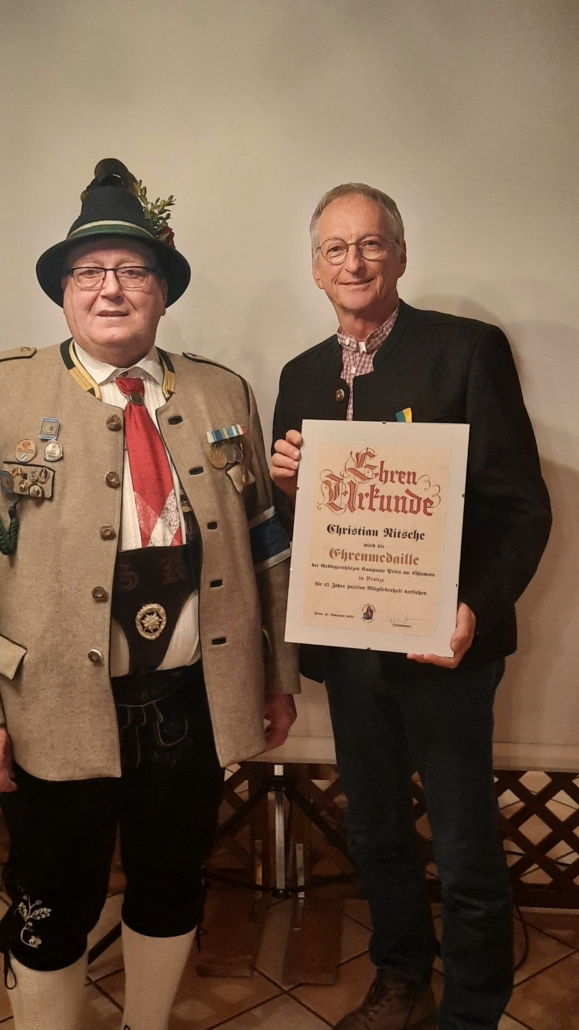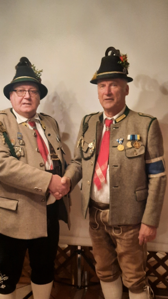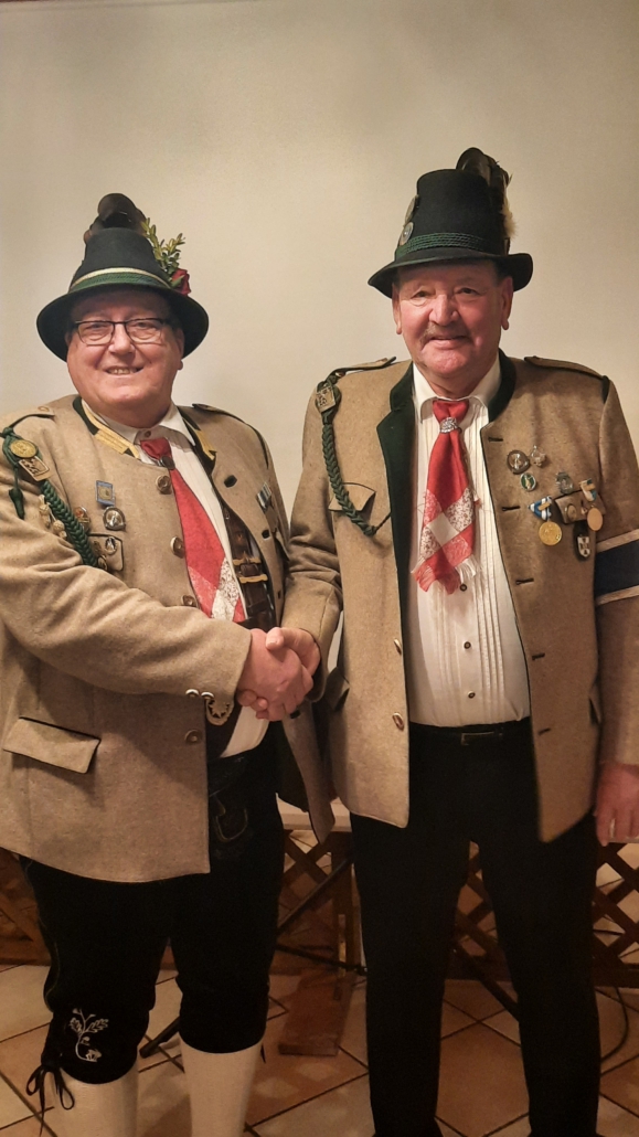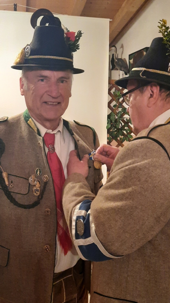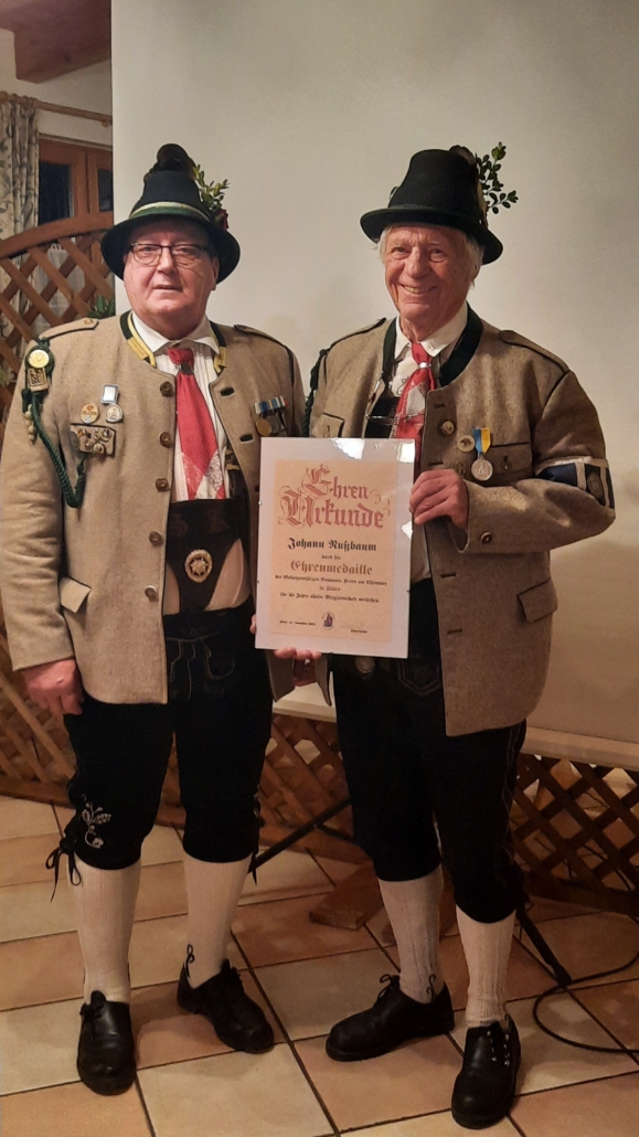 Walter Steindlmüller und Bernd Fischbacher erhielten für 60 Jahre Mitgliedschaft in der Kompanie die „Verdienstmedaille des Bundes der bayerischen Gebirgsschützen in Gold“.